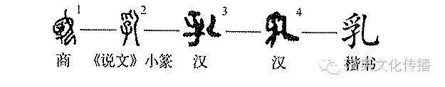 ”略微不同,以表示子面向母體乳之意。《說文》小篆“乳”字是甲骨文的訛變,“
