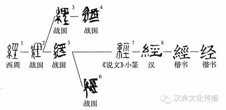 ,為《說文》篆文所本。北魏《元璨墓志》“經”字作“經”。今以“經”為“經”之簡化字。《說文》:“經,織也。”本義是織布機上的縱線。《論衡·量知》:“恒女之手,紡績織經。”引申指治理。虢季子白盤:“經維四方。”(治理四方)又引申指行,遵循。齊陳曼??:“肇堇(勤)經德。”(勤于修德)這些意義的“經”字讀為jīng。又作動詞,紡織。《韓非子·外儲說右上》:“吾始經之而不可更也。”這種意義的“經”字讀為jìng。(徐在國)
