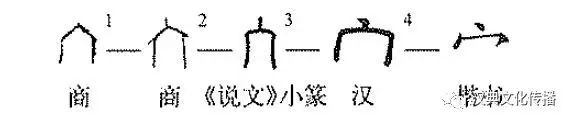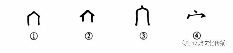 這是個“宀”(mián)字。在古代就是代表房子的意思。甲骨文①和金文②都有房子的樣子。小篆③則變成圓頂房子了,真像遼闊草原上的“蒙古包”。楷書④就不太像房子了。