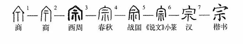 《說文》:“宗,尊祖廟也。”如《詩經(jīng)·大雅·鳧鹥》:“既燕(宴)于宗。”這是說:已經(jīng)宴飲在祖廟。由此又可以引申為“祖宗”,如《左傳·成公三年》:“使嗣宗職。”大意是:使我繼承祖宗傳下來的職位。后又引申為“宗族”,如《史記·秦始皇本紀(jì)》:“車裂以徇,滅其宗。”“徇”是對眾宣示。也就是說:車裂其身以示眾,并滅掉了他的宗族。上古以宗為本,所以“宗”也能當(dāng)“本”、“主旨”講,如《老子》:“言有宗。”這是說:言論要有所本。