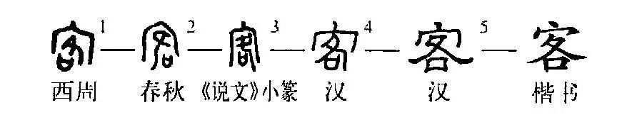 形聲字。從宀,各聲。“客”的聲符“各”,由“夂”(本像人腳形)和“口”組成。“夂”本朝下,到了秦代隸書,開始被橫過來,這樣不便于書寫。所以漢代隸書中角度向下扭轉(zhuǎn),以便于書寫。本義是賓客,客人。《廣韻·陌韻》“客,賓客。”《禮記·曲禮下》:“主人敬客,則先拜客,客敬主人,則先拜主人。”引申為顧客、門客、客卿等意義。(張玉金)
