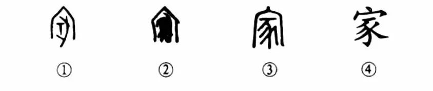 賀知章的名詩(shī)《回鄉(xiāng)偶書(shū)》“少小離家老大回”,這個(gè)“離家”當(dāng)然是指“人”離家了。可是甲骨文①卻以“屋內(nèi)有豕(豬)”為“家”。從這個(gè)字可以看出,在上古人們的牧業(yè)是從養(yǎng)豬開(kāi)始的,可見(jiàn)豬對(duì)人之重要。“家”字是個(gè)會(huì)意字,你看金文②那就更形象了,外面是屋,屋內(nèi)有一只頭朝下的豬。小篆③是屋內(nèi)有“豕”(豬)。④是楷書(shū)的寫法,與小篆大體相同。