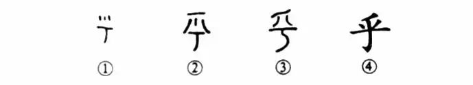 “有朋自遠方來,不亦說(悅)乎?”這個“乎”字與“兮”字相類似,也是個指事字。甲骨文①橫線之上的三點是指事符號,表示說話時氣息或聲音自口中發出。②是金文的形體,與甲骨文基本相似。只是上部多了一橫。③是小篆的形體。④為楷書的寫法。自古至今一脈相承。