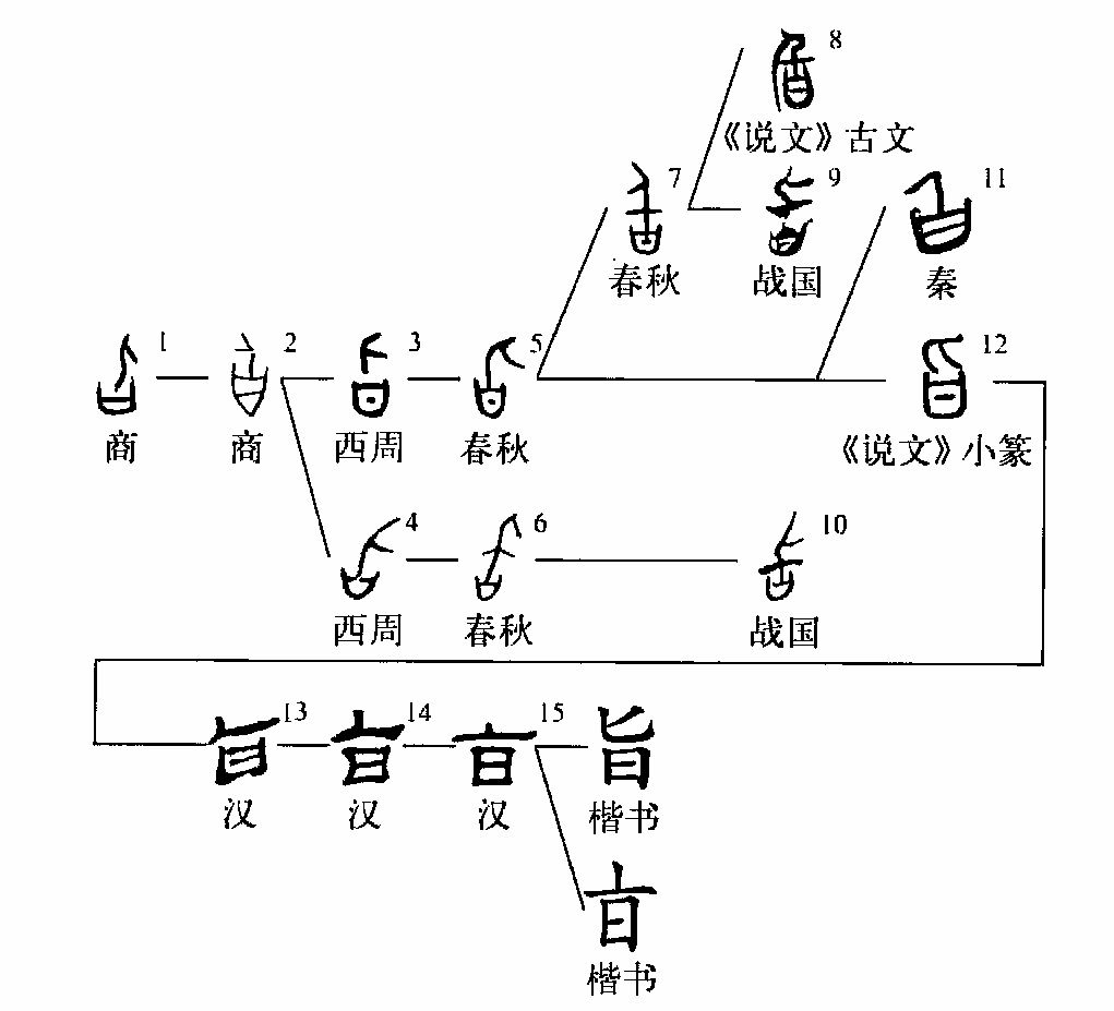 會(huì)意字。從匕,從口。匕,是進(jìn)餐用的勺子,像用勺子向嘴里送食物。“旨”字在殷商已多見,當(dāng)時(shí)偶見在“口”形內(nèi)加橫畫的,西周有無橫畫者并見,春秋之后,“口”內(nèi)增短橫而為“