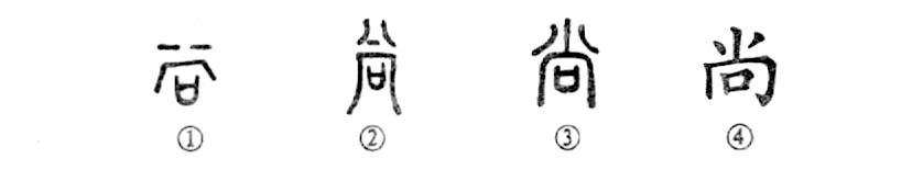 “賢人尚志。”這個“尚”字本為象形字。甲骨文①下部像一建筑物,壁有窗戶,上有兩橫,為煙氣上騰狀。②是金文的形體,其下部是個“向(窗戶)”字,上部未變。③是小篆的形體。④為楷書的寫法。