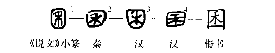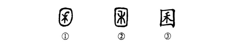 “不稼不穡,胡取禾三百囷兮?”這個(gè)“囷”字讀作qūn,本為會(huì)意字。①是古陶文的形體,其外部很像囤子形,內(nèi)部是“禾”,表示裝有糧食。②是小篆的形體,與古陶文相似。③為楷書的形體。