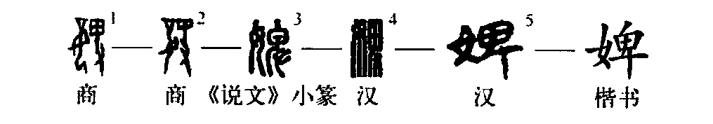 形聲字。從女,卑聲。甲骨文“婢”字從“妾”。“妾”與“女”用作義符可通。“卑”之形體變化參“卑”字條。“婢”的本義是女奴。《說(shuō)文》:“婢,女之卑者。”又“奴、婢皆古之罪人也。”甲骨文“婢”是一女子私名,因用作人牲,其身份被視為女奴。《合集》35361:“王賓祖辛爽妣甲姬、婢二人,??二人,卯二牢。” (王用姬、婢二人賓祭祖辛之配偶妣甲,并??殺二人,卯殺二牢)引申指女仆。 《墨子·七患》:“馬不食粟,婢妾不衣帛。”
