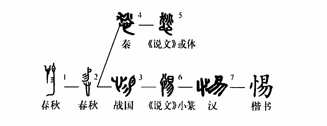 形聲字。從心,易聲。金文字形為左“心”、右“易”,或作上“易”、下“心”;小篆由金文演變而來,為左右結(jié)構(gòu)。或體與秦簡(jiǎn)一脈相承,作從“心”、“狄”聲,為上下結(jié)構(gòu);隸楷文字由小篆演變而來,寫作“惕”。本義為恭敬。《說文》:“惕,敬也。”由恭敬引申為警惕、謹(jǐn)慎,又引申為畏懼、戒懼。《書·盤庚上》:“惟汝含德,不惕予一人。”《左傳·襄公二十二年》:“無日不惕,豈敢忘職。”杜預(yù)注:“惕,懼也。”由畏懼引申為憂傷。“惕”在古代還有疾、急速之義。(郭小武葉青)