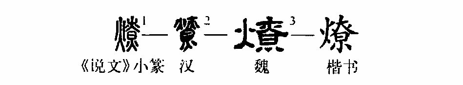 會意兼形聲字。從火,從尞,尞亦聲。本義為放火焚燒。《說文》:“燎,放火也。”《詩·小雅·正月》:“燎之方揚,寧或滅之。” (野火燒得正旺,誰能將它撲滅)鄭玄箋:“火田為燎。”泛指火燒。由火燒義引申為烘烤、燒焦。這些意義讀作liǎo。“燎”可轉(zhuǎn)指火把、火炬,還引申為燙,這些意義讀作liáo。由火炬義引申為照明,還引申為夜間打獵,又專指古代焚柴祭天,這些意義讀作liào。按,甲骨文有“尞”字,從火上木形會意,為“燎”本字,“燎”則是“尞”的分化孳乳字。(郭小武葉青)
