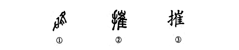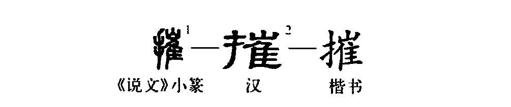 這是“黑云壓城城欲摧”的“摧”字,本為會意兼形聲的字。①是甲骨文的形體,左邊從“攴”,右邊為“佳(鳥)”,即撲打鳥,有摧毀之意。②是小篆的形體,“隹”上又增加了“山”,摧毀之意更為明顯。③是楷書的寫法。