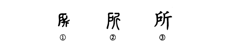 “所”字是個會意字。金文①的左邊是一扇門(戶),右邊是一把大斧頭,以斧破門,表示盟誓之義。小篆②的形體基本上同于金文。③是楷書的形體。“所”字當“破門”講的本義到了后世已經消亡,而大都被假借為“處所”的“所”字用了,如《左傳•僖公二十八年》:“公朝于王所。”就是說:公在王的住所朝見了王。現在又引申為特指機關或特種用途的處所,如醫務所、派出所、招待所等等。