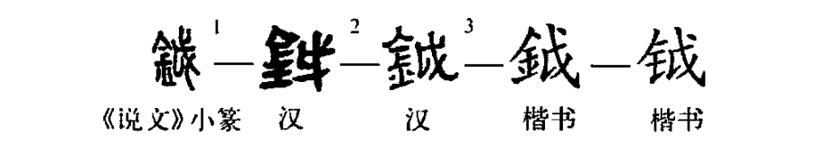 形聲字。《說文》:“鉞,車鑾聲也。從金,戉聲。《詩》曰:鑾聲鉞鉞。”徐鉉:“今俗作鐬,以鉞作斧戉之戉,非是。”桂馥義證:“《詩》曰者,《魯頌·泮水》文,彼作鸞聲噦噦。傳云:噦噦,言其聲也。馥案:鉞噦聲相近,本書眓讀若《詩》曰施罛濊濊。”邵瑛群經正字:“此文《詩》凡三見,《采菽》作嘒,《庭燎》、《泮水》作噦,皆取聲同假借,而義與《說文》同。”據西周金文和傳世典籍戉與鉞為古今字,戉本為斧鉞的象形字,后加金字旁作鉞。從《說文》所引用的《詩》“鑾聲鉞鉞”句看,鋮、噦、嘒皆為借用,鉞當為戉之今字。本義為斧鋮。(周寶宏)