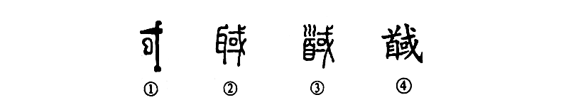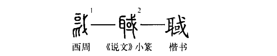 “俘二百五十人,馘百人。”這個“馘”字讀作guó,本為會意字。①是金文的形體,表示以戈斷耳。②是小篆的形體,將“戈”訛變作“或”,成為從耳或聲的形聲字。③是小篆的異體字,以“首”代“耳”。④為楷書的寫法。