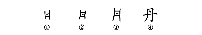 “丹桂飄香”中的“丹桂”,就是開紅花的桂花。這個(gè)“丹”字為什么是紅顏色的意思呢?原由“丹砂”而得名。你看甲骨文①就像在井中有一塊“丹砂”。《說文解字•丹部》說,外形“象采丹井”。②是金文的形體,與甲骨文類似。小篆③也大體上與甲骨文相同。④是楷書的寫法。