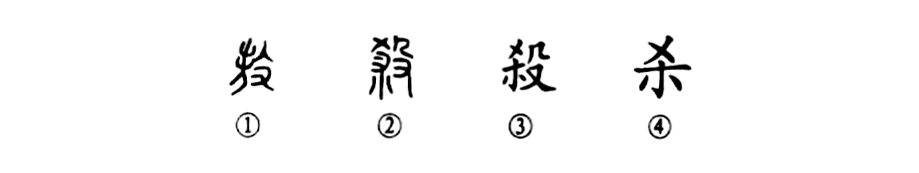 “為報年來殺風景,連江夢雨不知春。”這個“殺”字本為會意字。①是《說文》中的古文形體,左邊是一個長頭發、面朝左的人形,右邊是“殳”,表示一只手拿著棍棒向那個人打去。②是小篆的寫法。③是楷書繁體字。④為簡化字。