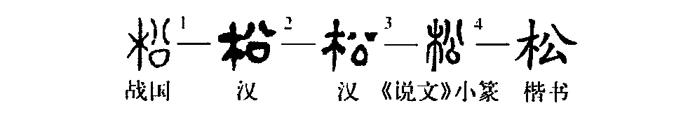 形聲字。從木,公聲。樹木名,松樹。《說文》:“松,木也。”《詩·鄭風·山有扶蘇》:“山有喬松,隰有游龍。”又《小雅·天保》:“如松柏之茂,無不爾或承。”又借為松散、松弛之“松”(本作“鬆”)。《字匯補·木部》:“松,與鬆同。”新中國成立后,“鬆”被并入了“松”字。(冀小軍)
