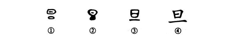 《木蘭詩》:“旦辭爺娘去,暮宿黃河邊。”可見“旦”與“暮”是相對的,“旦”是早晨,“暮”是晚上。甲骨文①的上部是“日”,下面的部分表示地面或水面。金文②是海上看日出的樣子,火紅的太陽剛跳出海面,其下部水日相連,好像還有半個太陽在水中。③是小篆的形體,“日”下部分變成了一條線。④為楷書形體。