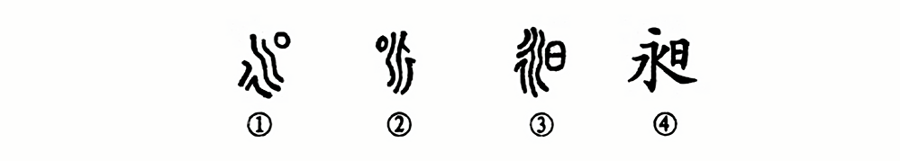 這個“昶”字讀作chǎng,本為會意字。①是金文的形體,其左是波濤洶涌的河流,右上角是個太陽,表示日長。②是金文的另一種形體,“日”移于河流的左上角,意義未變。③是小篆的形體,與金文相似。④為楷書的寫法。