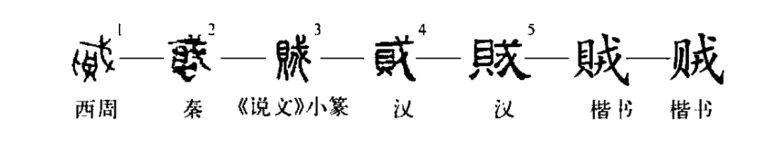 形聲字。從戈,則聲。始見于西周金文。戰國文字“賊”字所從的聲符“則”或從刃、從員,為“則”字繁體。或從戈、從鼎(則省),馬王堆漢墓帛書或從戈、從貝。《篇海類編》:“,同賊。” 《說文》篆文所從的“刀”放在“戈”下, “貝”在左部,隸變作“”。“”又訛變作“”遂成“賊”字。“貝”簡化作“貝”。“賊”類推簡化作“賊”。本義是破壞。《說文》:“賊,敗也。”《左傳·文公十八年》:“毀則為賊。”(破壞法是賊)引申指作亂叛國危害百姓的人。溫縣盟書:“而敢與賊為徒者。” (膽敢與作亂叛國的人結為徒黨) “賊”通“則”,轉折連詞。《侯馬盟書》:“賊(則)永亟視之。”(徐在國)
