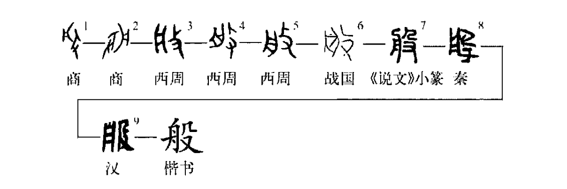 這個“般”字本為會意字。①是甲骨文的形體,左邊像一個器皿(盤),右邊像以手執(zhí)匙從器皿中取食。
