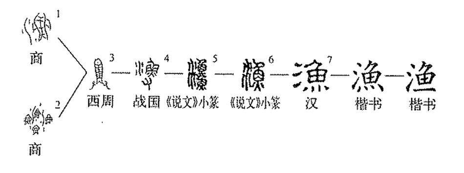 【譯文】,捕魚。由、由水會意。漁,篆文字,從魚。